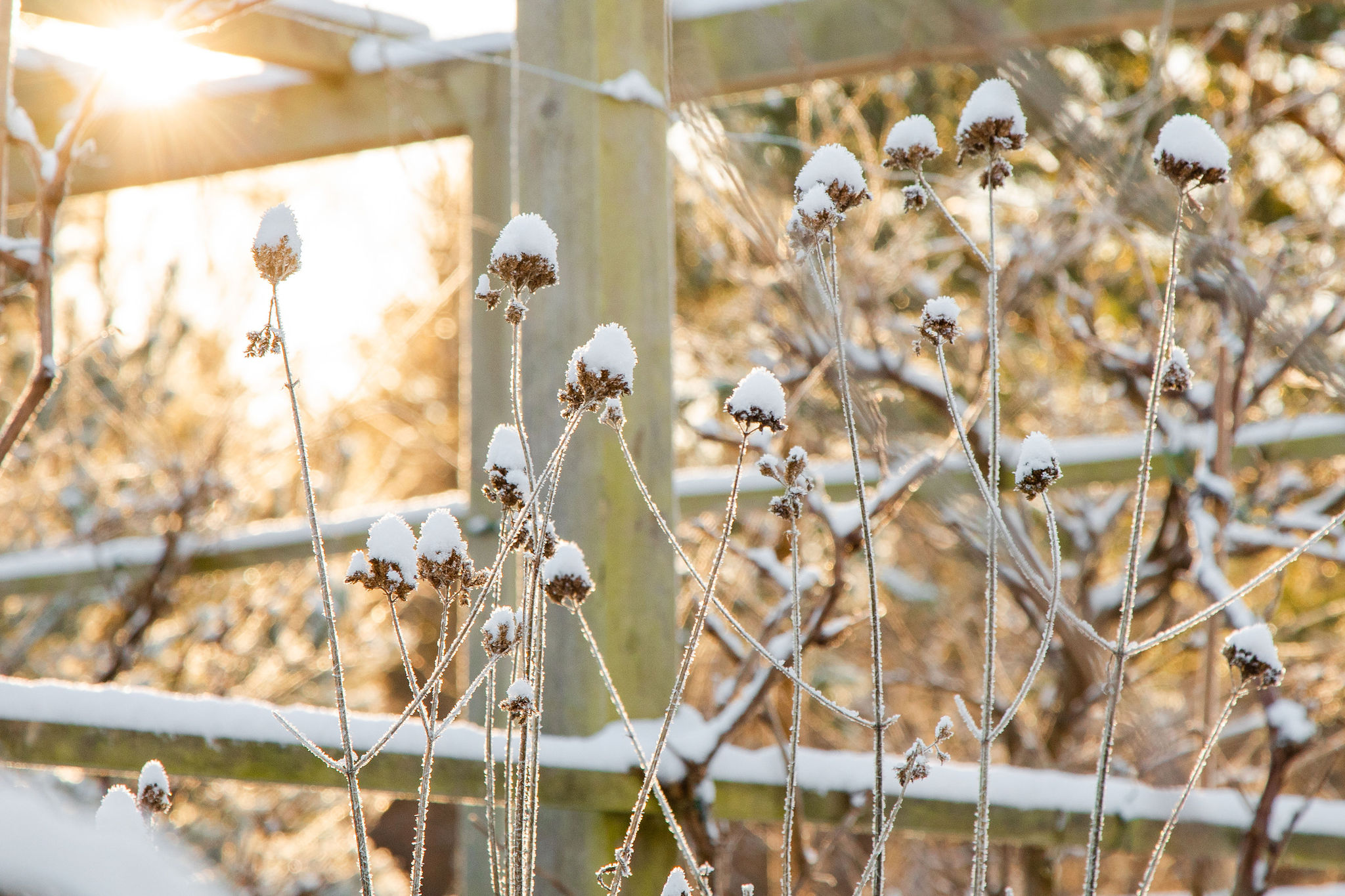 Om snön lägger sig riktigt tungt på dina nyplanterade eller unga buskar, se till att borsta bort täcket för att undvika att de ej knäcks eller skadas.